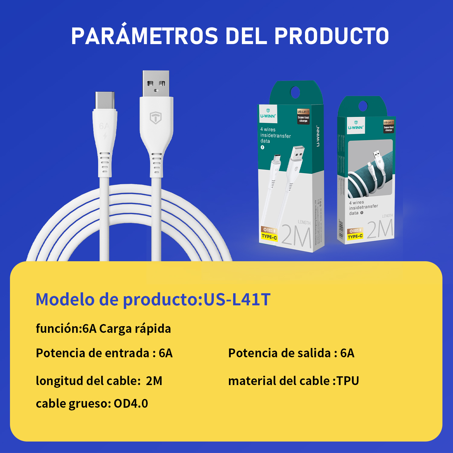 L41 USB-C Cable 6A 2M White USB 3.0 UWINN
